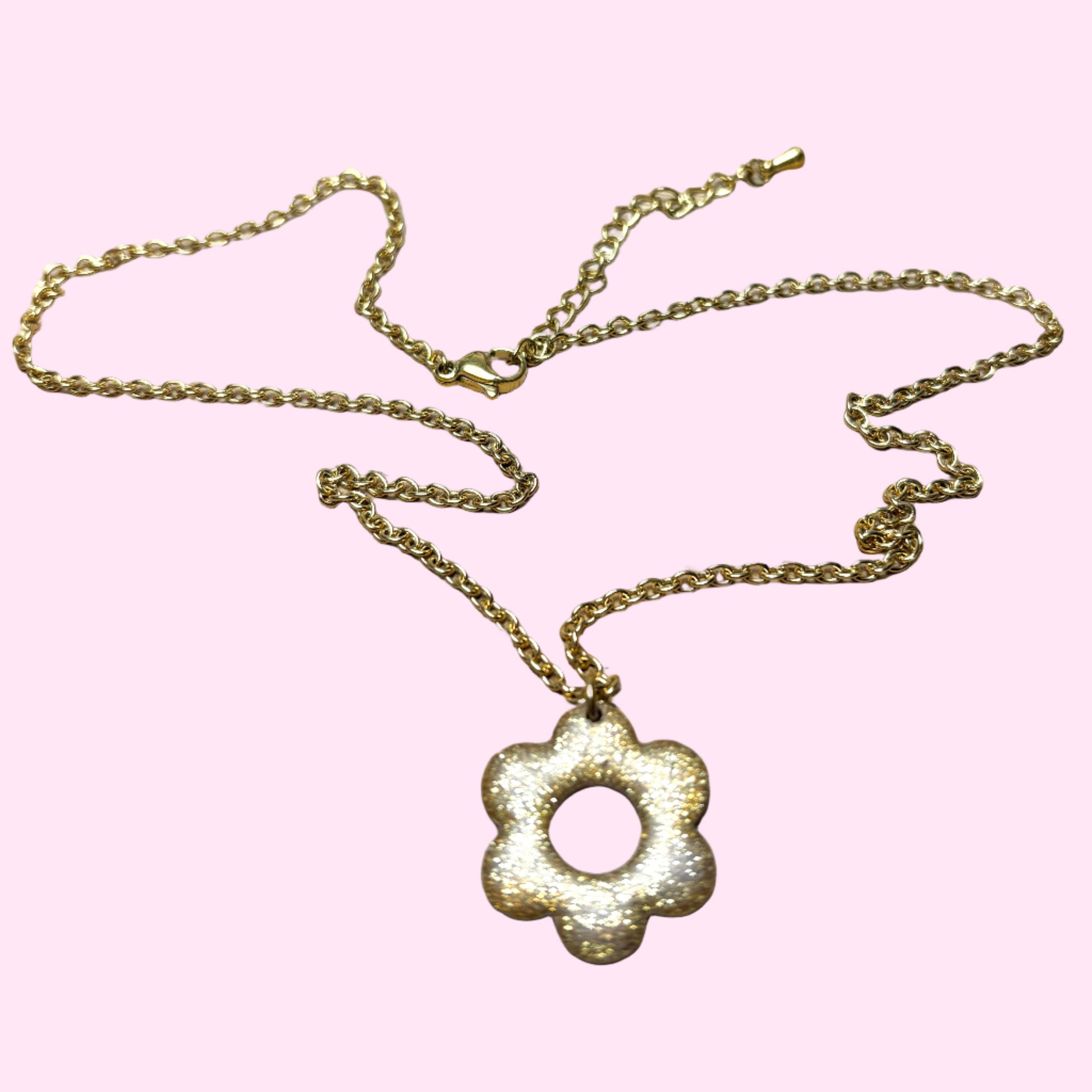 Collier Alma, chaine en acier inoxydable orné d'une fleur six pétales, le modèle Alma fabriqué à la main dans notre atelier en argile polymère.